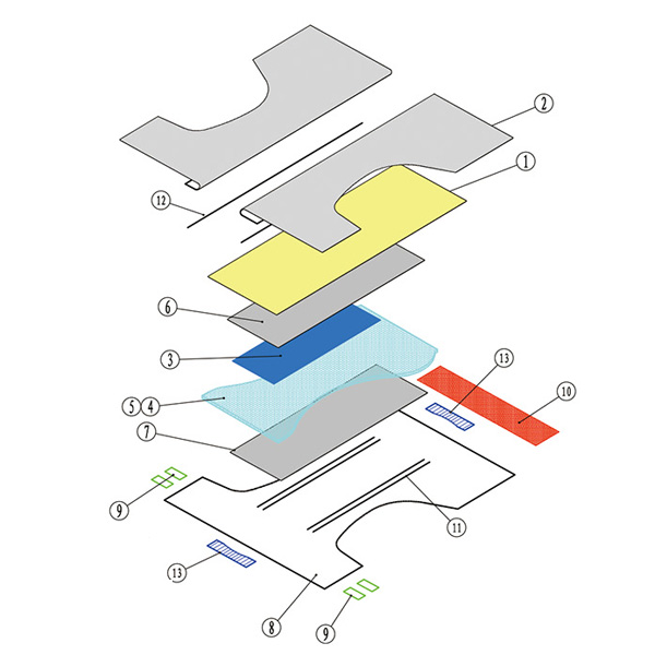 基本生產(chǎn)工藝配置: 高速粉粹機(jī)(可使用未處理漿) 棉成型機(jī)構(gòu)I 棉成型機(jī)構(gòu)I 高分子下料機(jī)構(gòu)I 高分子下料機(jī)構(gòu)II 材料供給機(jī)構(gòu) 弧切組合刀具 縱向折疊機(jī)構(gòu) 終切組合刀具 橫向折疊機(jī)構(gòu) 供氣機(jī)構(gòu) 安全防護(hù)機(jī)構(gòu) |